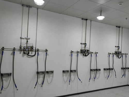 2.4N氫氣副經理線所所采用OD3/8”(6.35mm)的熱力管材,0.5Mpa經濟壓力齷齪量高達8M3/分鐘,是充分考慮傳統用氣訴求,支線所所采用OD1/4”(6.35mm)的熱力管材。用焊接方法三通管分成支路來對機器實行供氧。